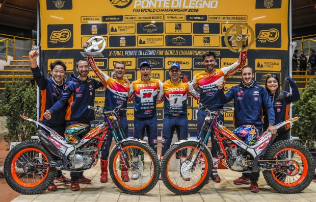 The site covers Team HRC in MXGP and Cross-Country Rally/Dakar, the Repsol Honda Team in MotoGP and Trial World Championships, and Team Honda in AMA Supercross and Pro Motocross.